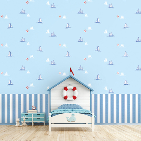 Каждый производитель имеет каталог обоев, перекликающихся с морской тематикой. Выбор огромен — от парусных яхт до изящных синих полос и нежно-голубых фонов.